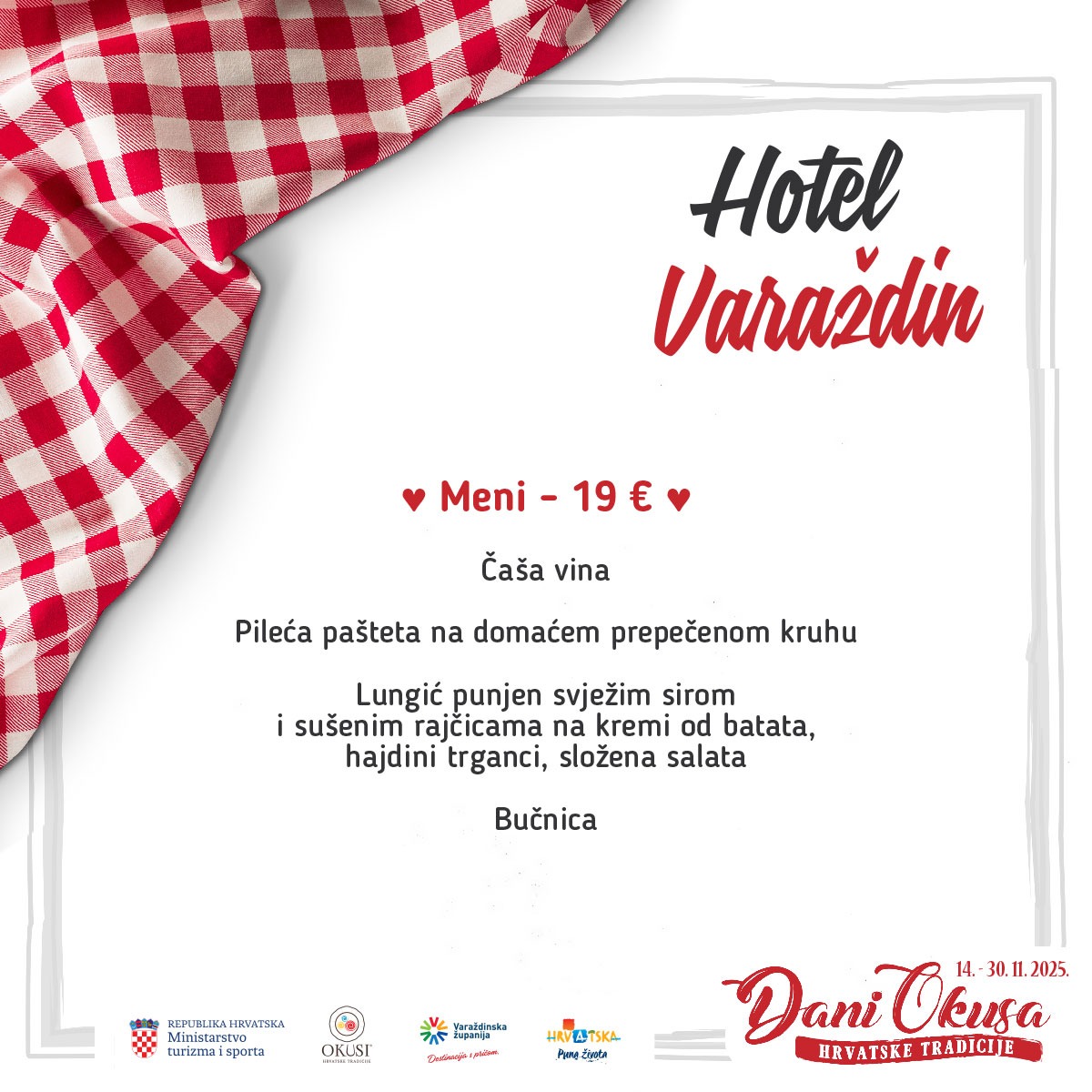 Od 14. do 30. studenoga pridružujemo se nacionalnoj manifestaciji “Okusi hrvatske tradicije”, u sklopu koje predstavljamo dva tradicijska menija pripremljena po receptima našeg kraja.